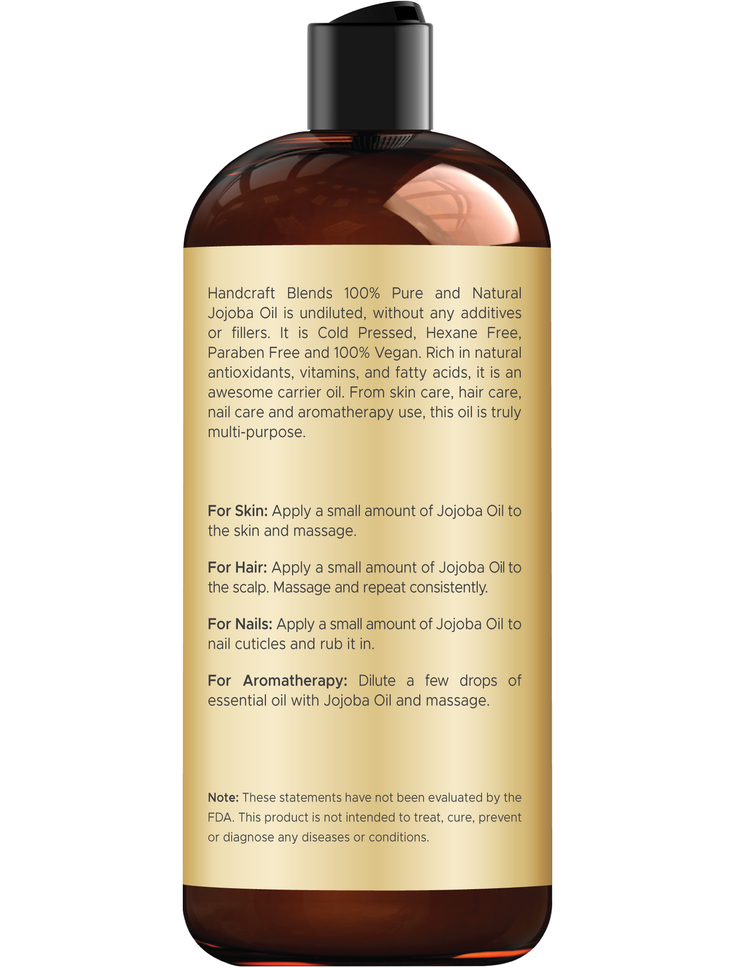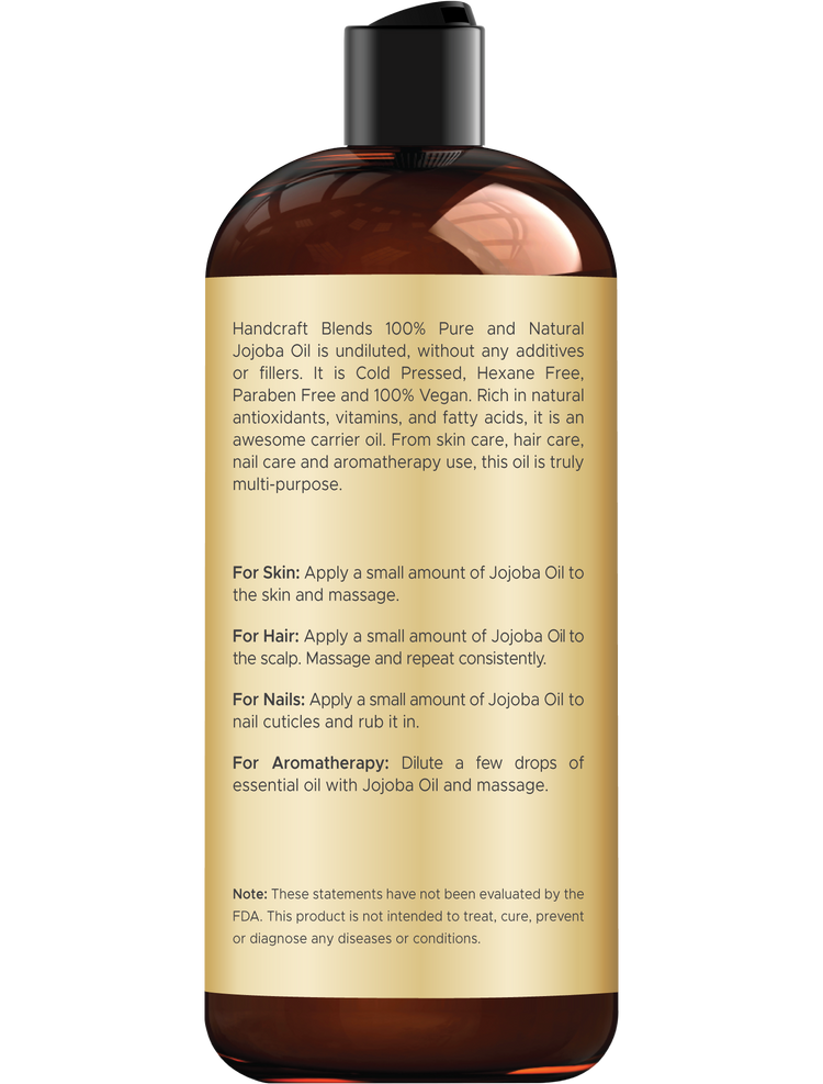 - COLD PRESSED NATURAL JOJOBA OIL - Our pure jojoba oil is extracted from the jojoba seeds using cold pressed extraction method. It is most used for aromatherapy, massage and as a hair and skin moisturizer. Our premium quality jojoba carrier oil is hexane free, preservative free, chemical free and 100% vegan.