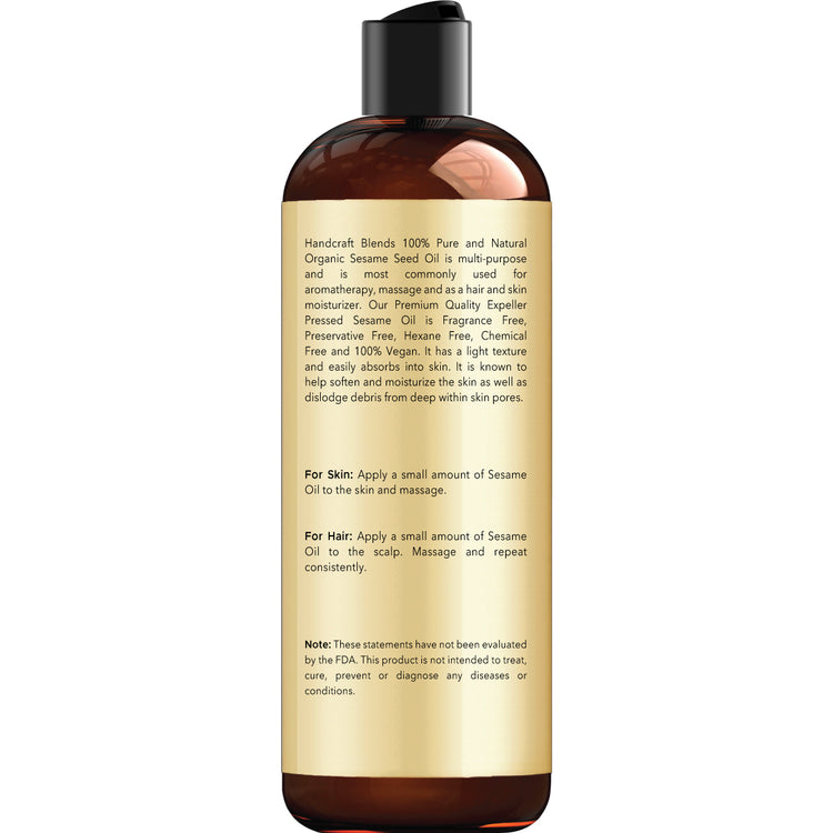 - 100% PURE & NATURAL SESAME SEED OIL – Our USDA Organic Sesame oil is unfiltered, undiluted, without any additives or fillers. Rich in vitamins B & E, it is truly a multipurpose oil for hair care and skin care.