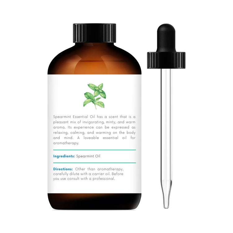 - SPEARMINT OIL BLENDS WELL WITH – Basil, Eucalyptus, Lavender, Lemon, Rosemary, Peppermint and Tea Tree.