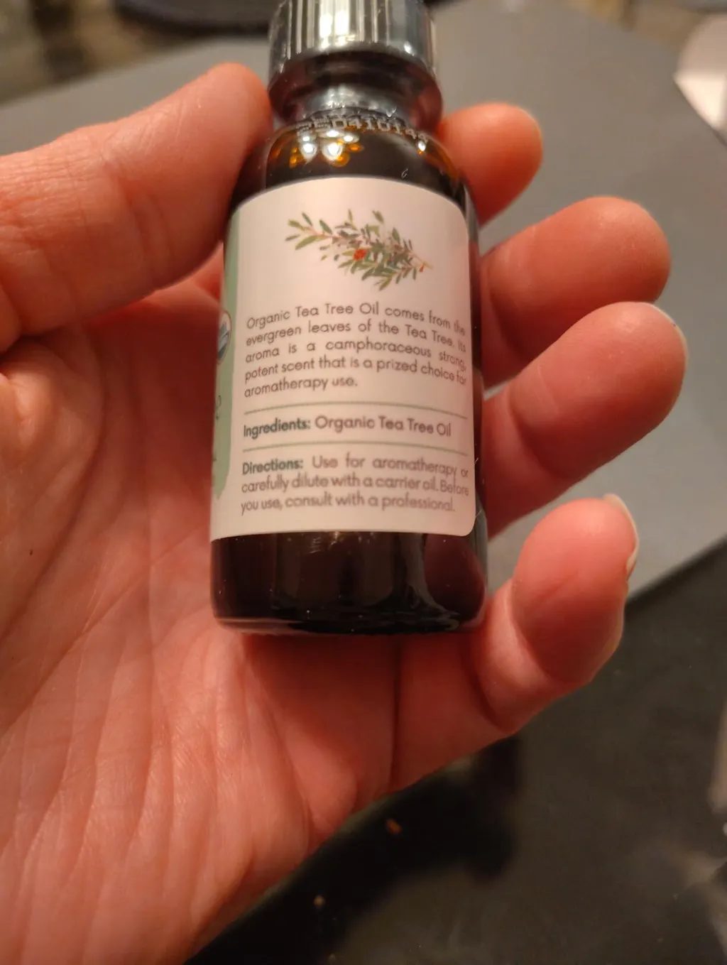 Warning: For external use only. Tea tree essential oil must be diluted before applying to the skin. Avoid contact with eyes and sensitive areas. Some individuals may be more sensitive to potent aromatic oils — perform a patch test before first use and discontinue if irritation occurs. Keep out of reach of children and pets.