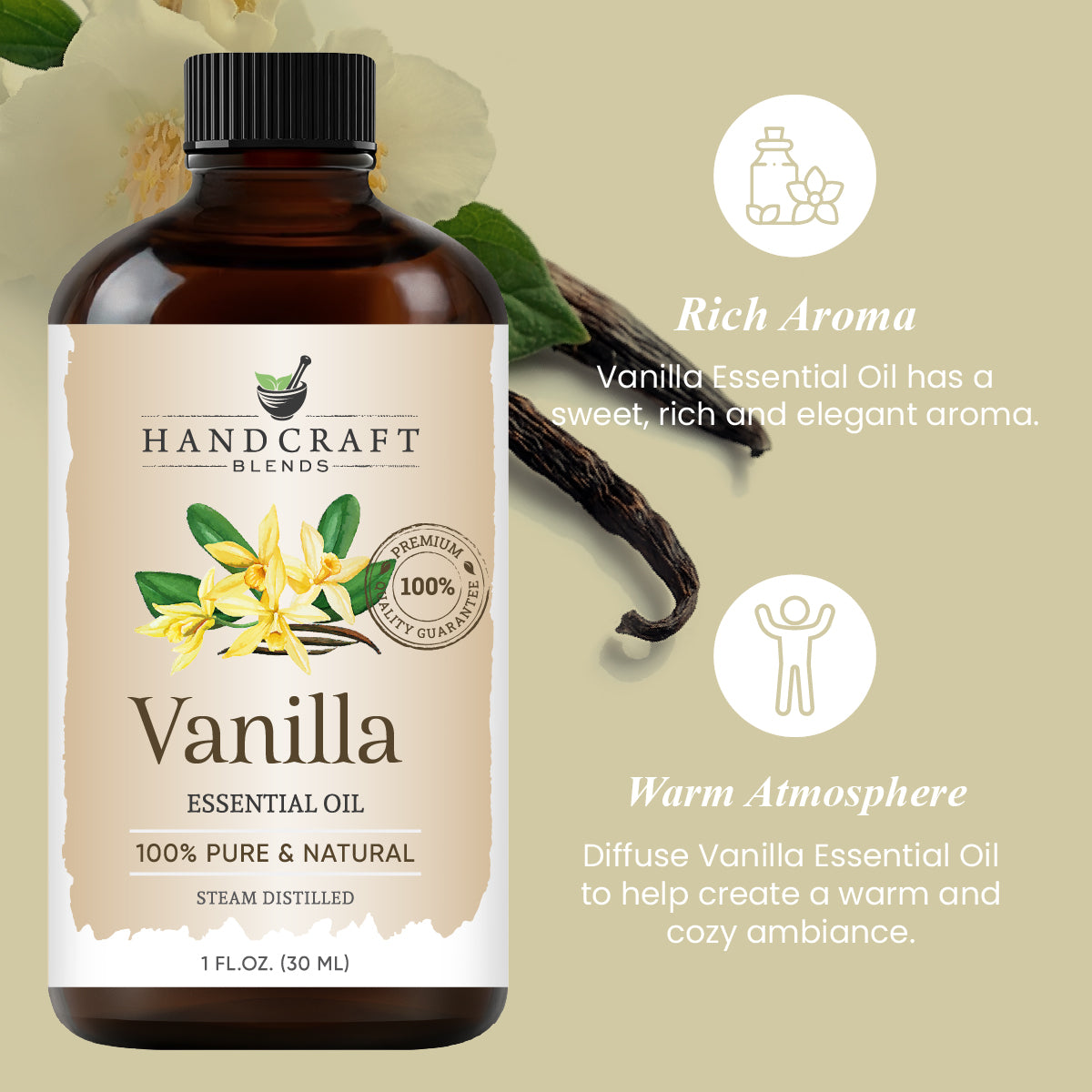 100% PURE & NATURAL VANILLA OIL - Handcraft Blends oils are exactly that! Many oils being sold make that claim but are in fact made of natural isolates and mixtures. Each essential oil is tested by an independent lab which is why every bottle comes with a Quality Guarantee.