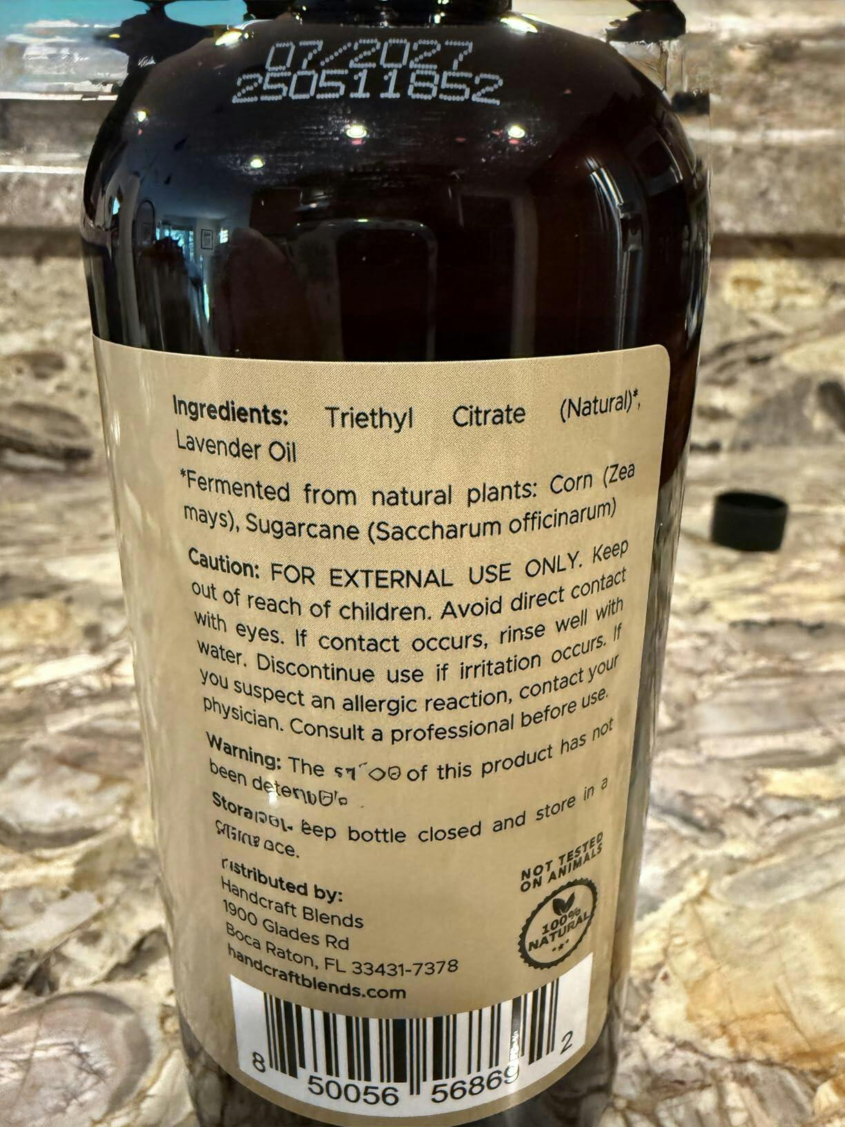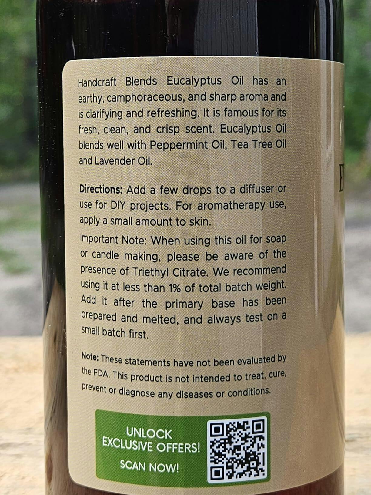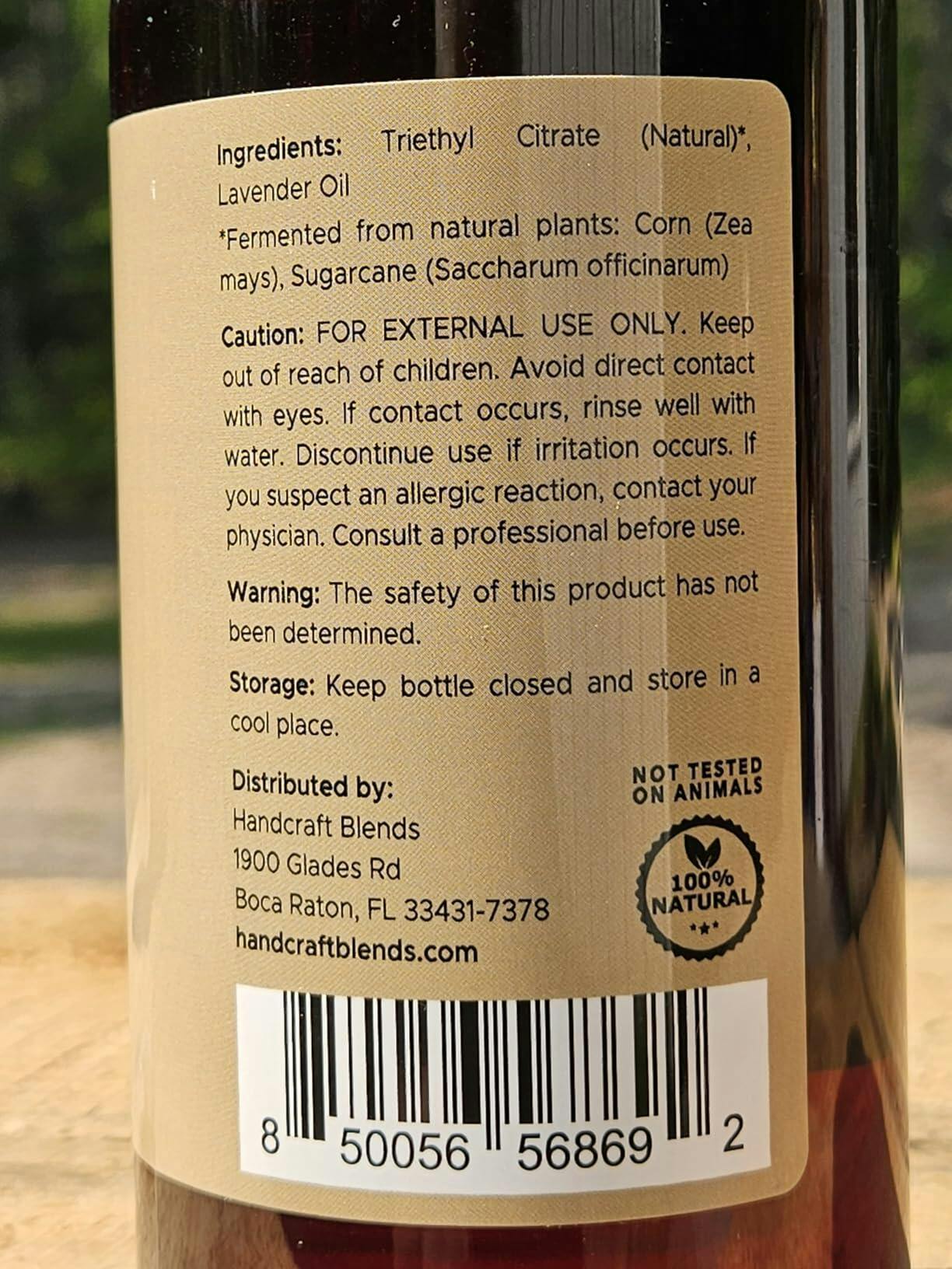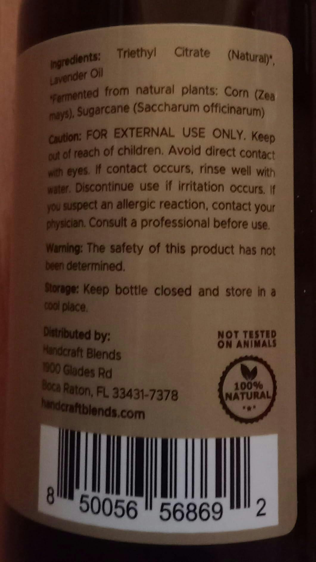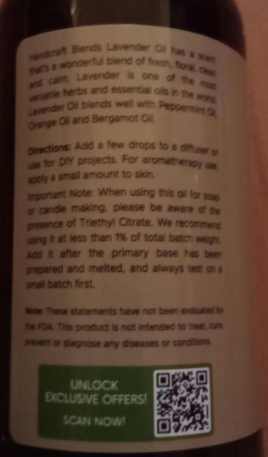 This is a big 16 ounces of lavender scented oil for use as an aroma, either in a diffuser or humidifier, or in lotions, soaps or other products. You could absolutely blend this into ordinary liquid hand soap or shampoo. It smells wonderful. I appreciated that the product description suggests some other scents that lavender blends well with. It is a beautiful and traditional floral scent but I do not always feel quite that girly I guess. Lavender and mint or lavender and rosemary sound excellent to me because I enjoy those scents and have those essential oils. Apart from lavender oil, the only other ingredient mentioned in Handcraft Blends Lavender Essential Oil is Triethyl Citrate, an emulsifier made from plants, that has no odor. The quality of this seems excellent and you get a lot so if you use fragrance oils a lot it's a pretty decent value.