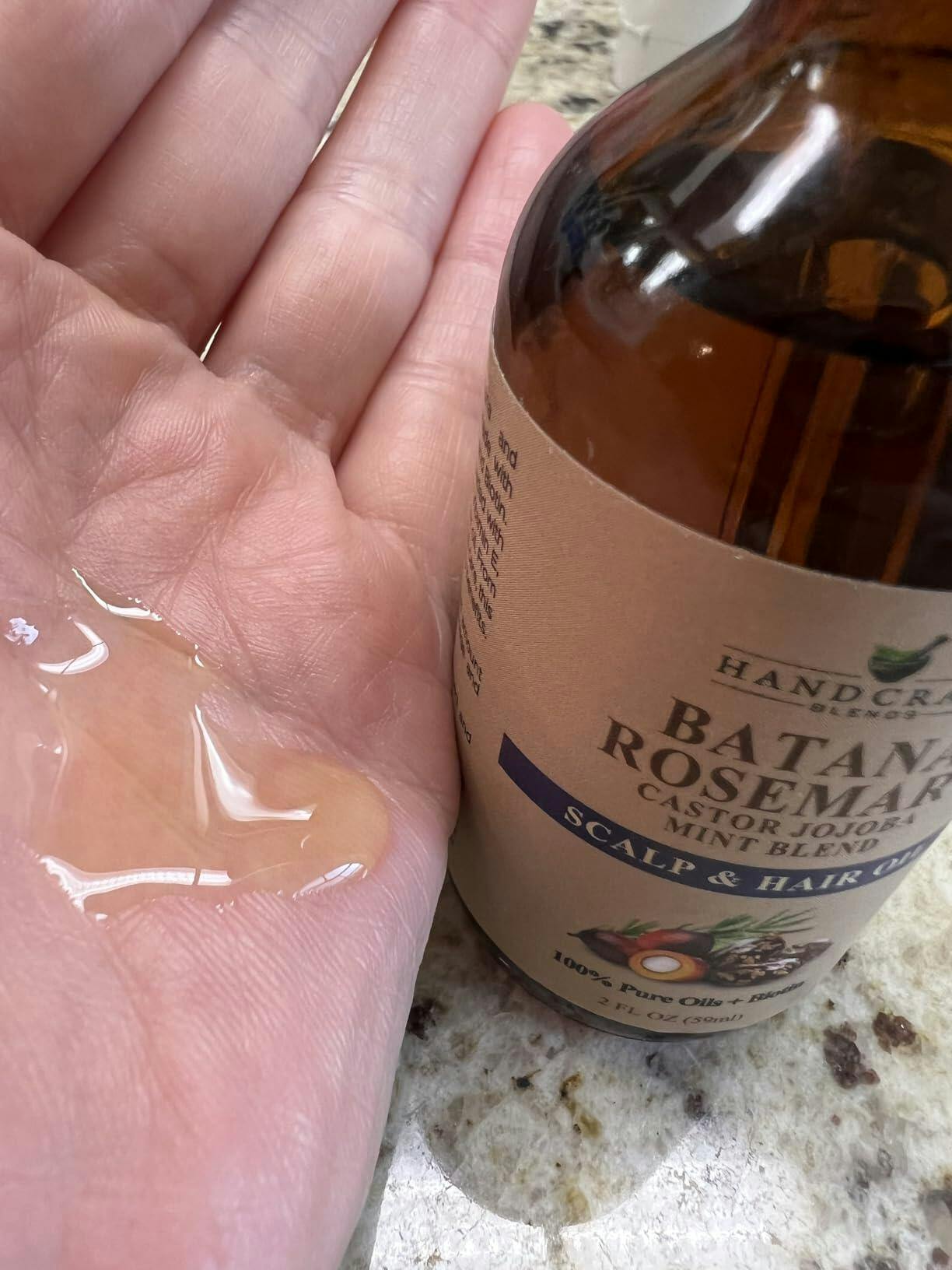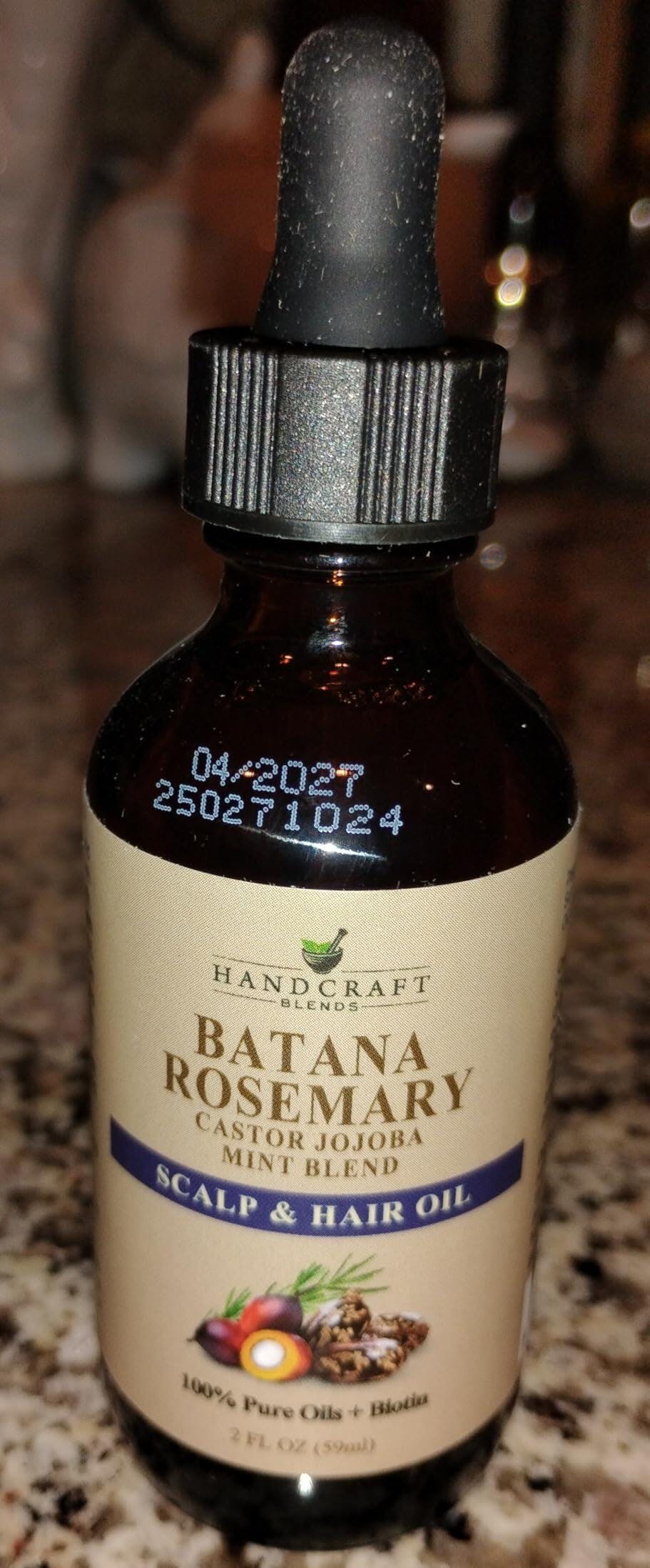 I've been using the Batana Rosemary Hair Growth Oil consistently for about a month now, applying it 34 times a week mainly as an overnight treatment. I bought it because Ive been struggling with thinning hair along my hairline and a dry, itchy scalp and I wanted something natural without harsh chemicals. What I Like: Hair feels thicker healthier: After about two weeks, I noticed my hair feeling stronger, especially at the roots. The breakage around my edges has reduced significantly. Around week four, some baby hairs started coming in along my temples definitely a good sign! Moisturizes dry scalp: My scalp used to get flaky between washes, but this oil really helped lock in moisture. No more itching or dry patches. A little goes a long way: You only need a few drops per section. The 2oz bottle seemed small at first, but it's actually lasted longer than I expected. Clean ingredients: I appreciate that its made from Batana oil, rosemary, and other natural oils. No silicones or mineral oil. What Could Be Better: The smell is strong: It has a very earthy, roasted nut scent from the Batana oil, mixed with herbal rosemary. Its not unpleasant, but it definitely lingers. I only use it at night because of the scent. Packaging: The bottle doesnt have a dropper or pump, which makes application a bit messy. I ended up transferring it to a dropper bottle I had at home. Takes time: Dont expect overnight miracles. This isnt a quick fix youll need to be consistent and patient to see results. Final Thoughts: If you're dealing with hair thinning or dry scalp and want a natural, nourishing oil, this is worth trying. Its not magic, but it does work if you use it regularly and give it time. The strong scent may not be for everyone, but for me, the results are worth it. Would I repurchase? Yes but Id love to see a version with improved packaging and maybe a slightly milder scent.
