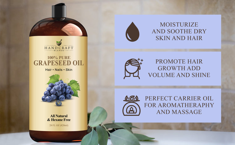 • 100% PURE & NATURAL GRAPESEED OIL is most commonly used for aromatherapy, massage and as a hair & skin moisturizer. Our premium quality oil Fragrance Free, Hexane Free, Preservative Free, Chemical Free, and 100% Vegan.