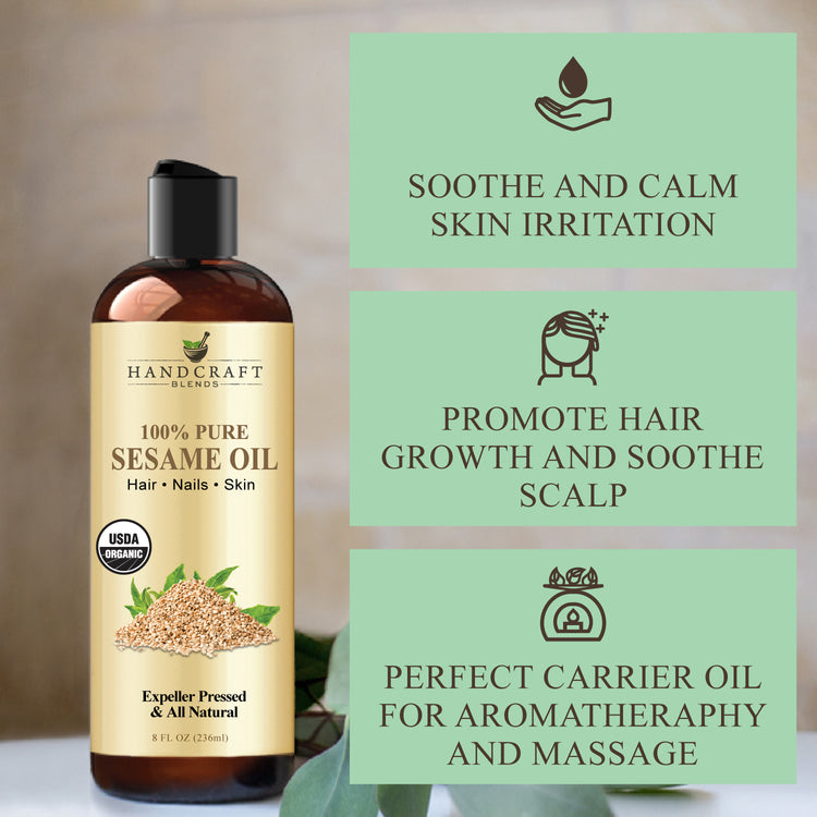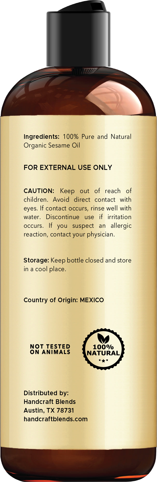 Handcraft Blends Organic Sesame Oil - 8 Fl Oz - 100% Pure and Natural - Premium Grade Carrier Oil for Skin and Hair - Hair and Body - Massage - Expeller-Pressed and Hexane-Free